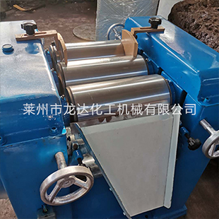 通過水平的三根輥筒的表面相互擠壓及不同速度的摩擦而達(dá)到研磨效果。三輥研磨機(jī)的輥筒材質(zhì)為冷硬合金鑄鐵離心鑄造而成。